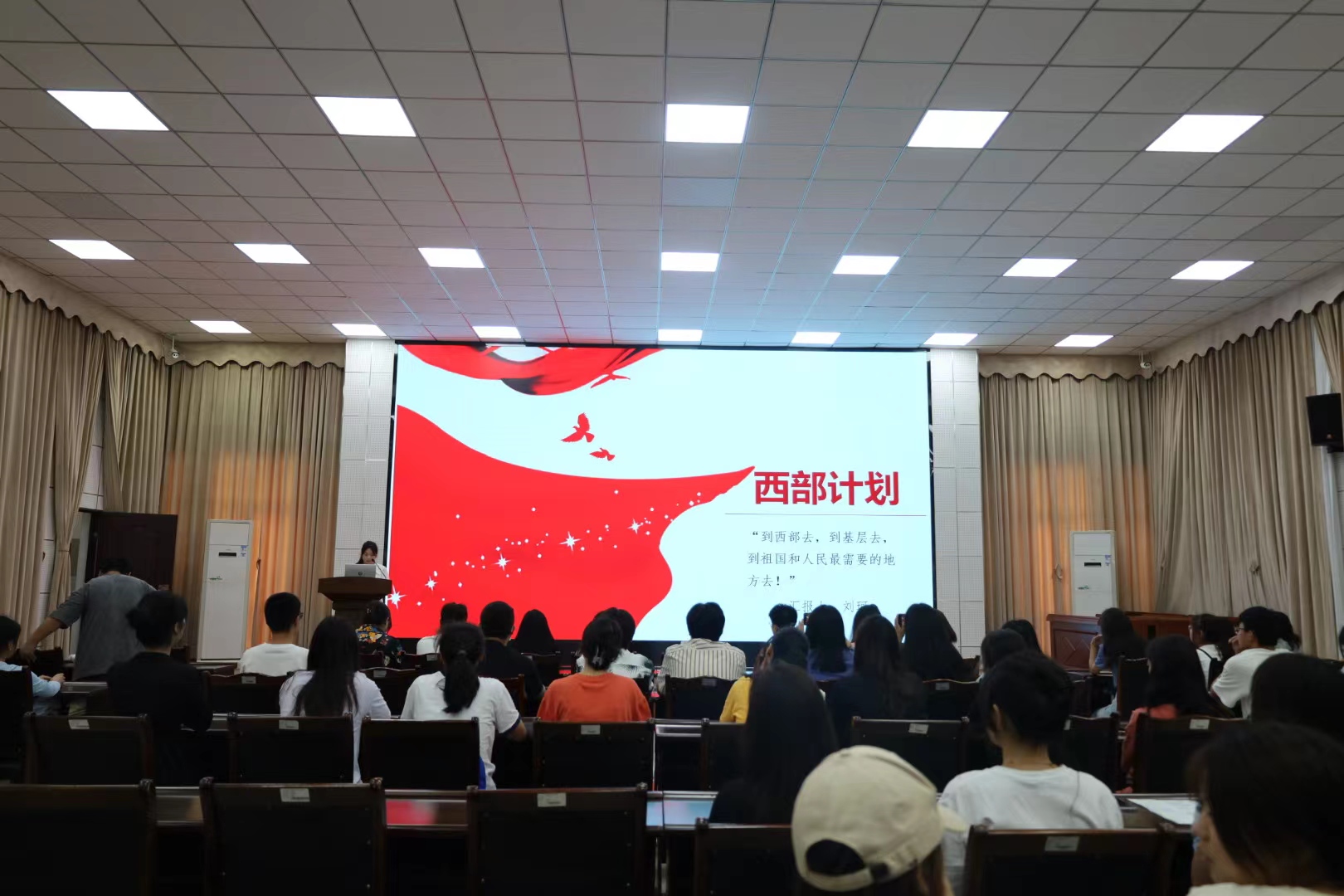 为深入学习宣传贯彻党的二十大精神,贯彻落实习近平总书记关于高校毕业生就业工作和深入开展学雷锋活动作出的重要指示精神,进一步引导和鼓励有理想主义情怀的青年学生到基层工作、到乡村工作,积极投身乡村振兴事业,大力弘扬“奉献、友爱、互助、进步”的志愿精神,四川中医药高等专科学校团委于2023年5月15日组织2020级、2021级全体团学干部通过线下讲座、线上直播的方式举办“青春就业大讲堂—西部计划”宣讲活动。