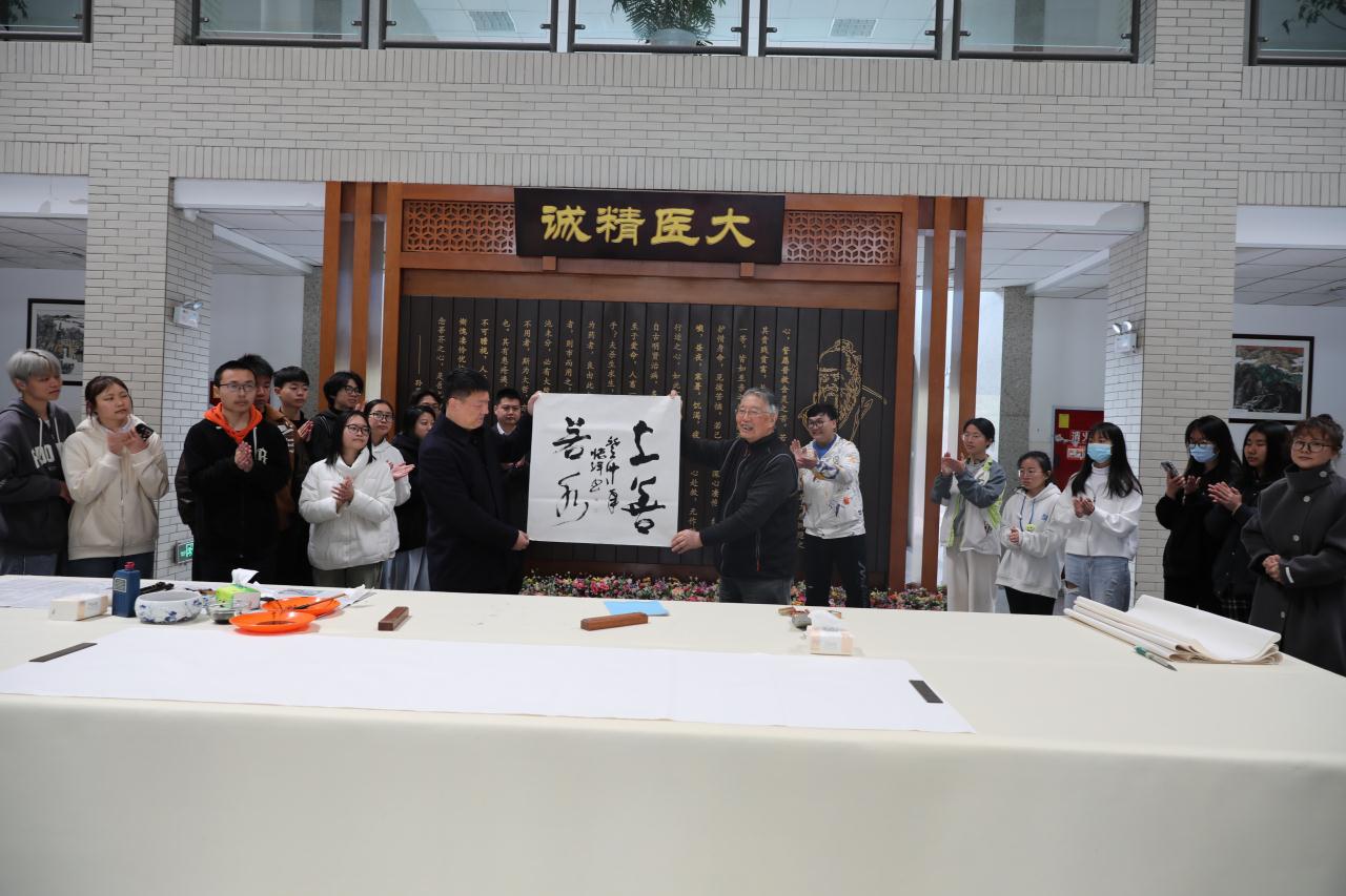 3月28日,我校邀请到原泸州医学院党委书记、泸州市老年诗书画研究会会长、西南医科大学宝山诗书画院院长叶怀祥教授来我校进行书法交流活动。校党委副书记汪涌泉,副校长李祥以及青年教师、墨林书画社学生代表共60余人出席了本次活动。
