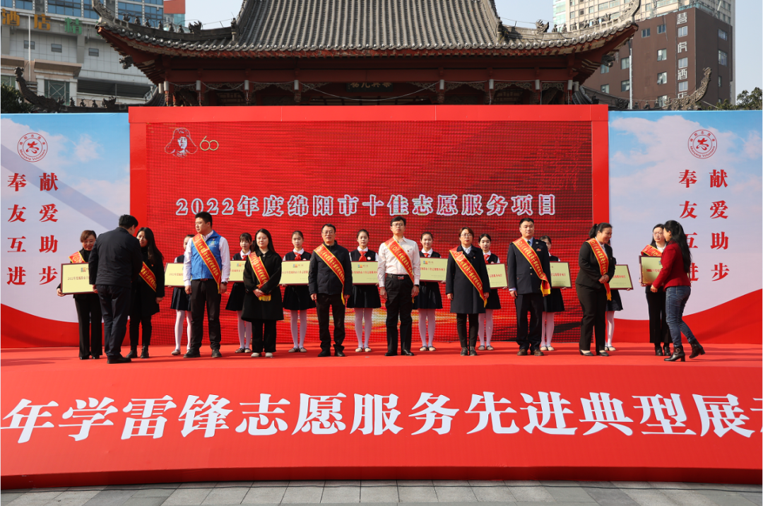 3月3日上午,在绵阳市涪城区铁牛广场举行了学雷锋志愿服务先进典型展示交流活动,绵阳市副市长胡进耀出席活动并对2022年度“绵阳十佳志愿服务项目”进行颁奖,我校岐黄志愿服务项目获此殊荣。