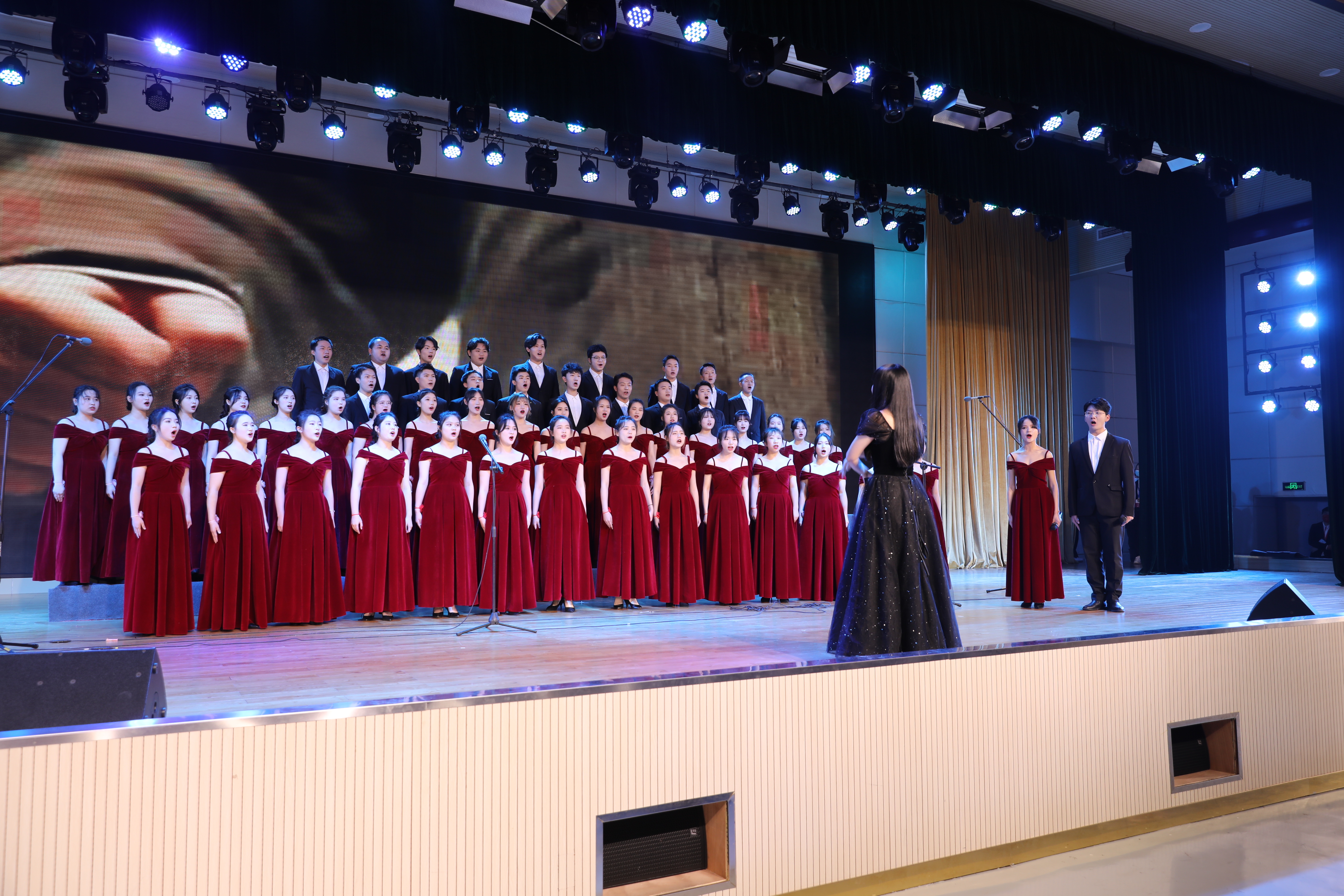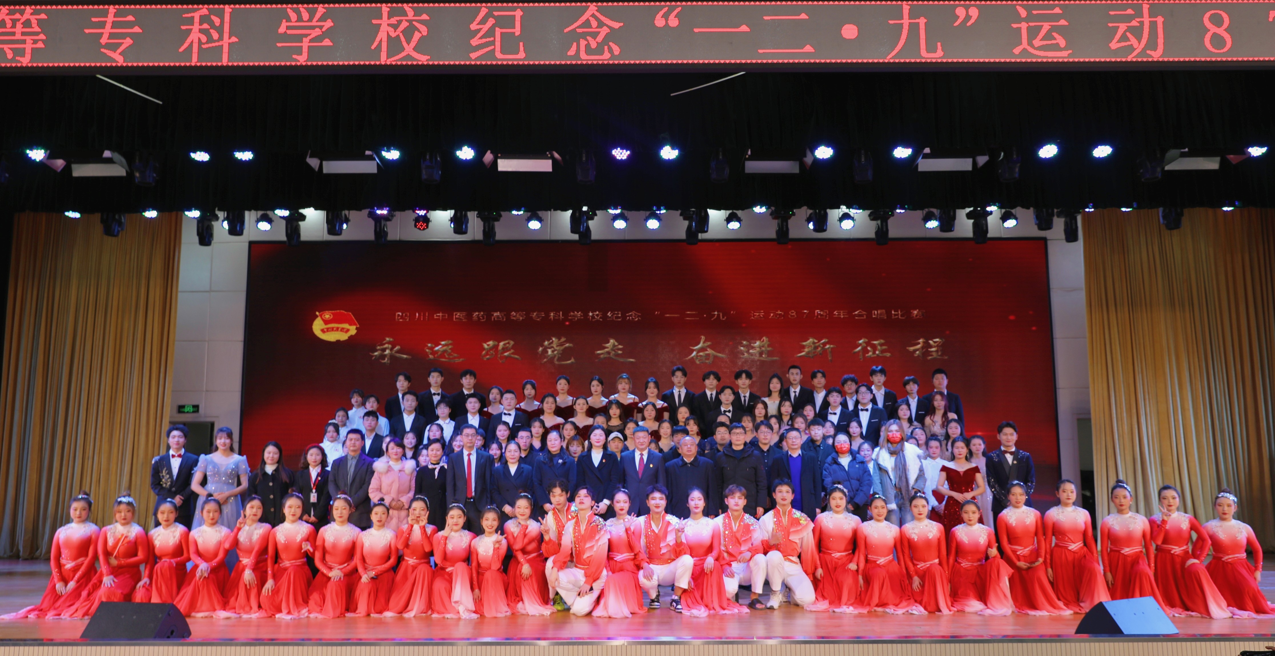2022年12月8日,我校举办“永远跟党走,奋进新征程——纪念“一二·九”运动87周年合唱比赛,来自我校六个学院的参赛队伍与校舞蹈队、校合唱团共展风采。全体校领导、各部门和学院负责人及师生代表参加。