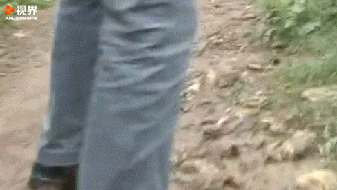 在一段河谷,她踩滑摔了一跤