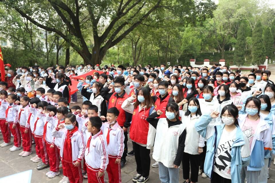 接下来便是全体青少年举起自己的右手紧握成拳,在丰碑前用嘹亮的声音重温誓词,并庄严承诺继承和发扬革命传统。
