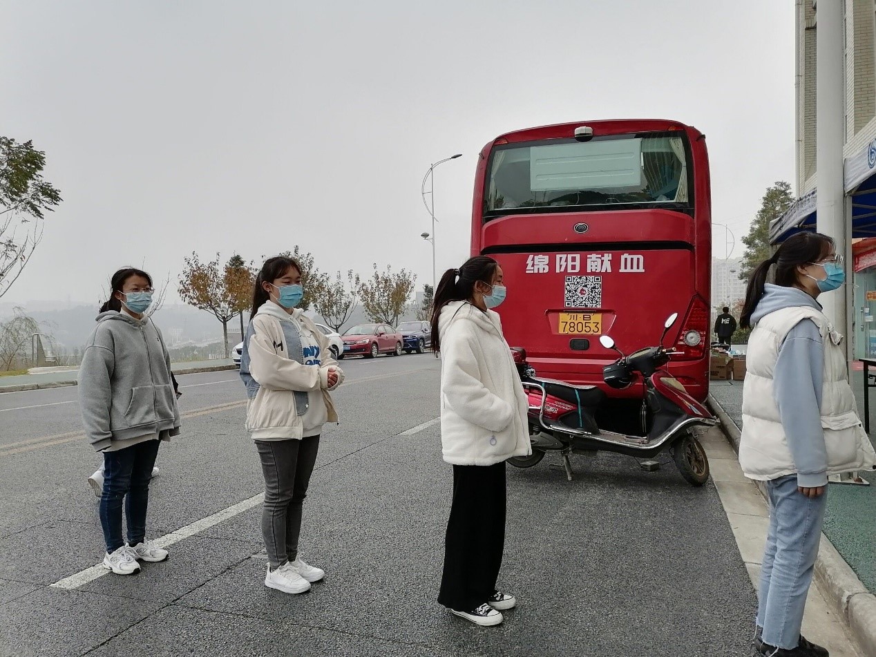 11月13日上午,我校献血队(绵阳市无偿献血志愿服务大队医专分队)在医专北区超市马路旁成功组织了“热血同行,众心抗疫”献血车进校园活动。当天川医专学子献血人数共计245人 ,献血量达63300ml,为我市血液供应保障工作贡献了青春力量。