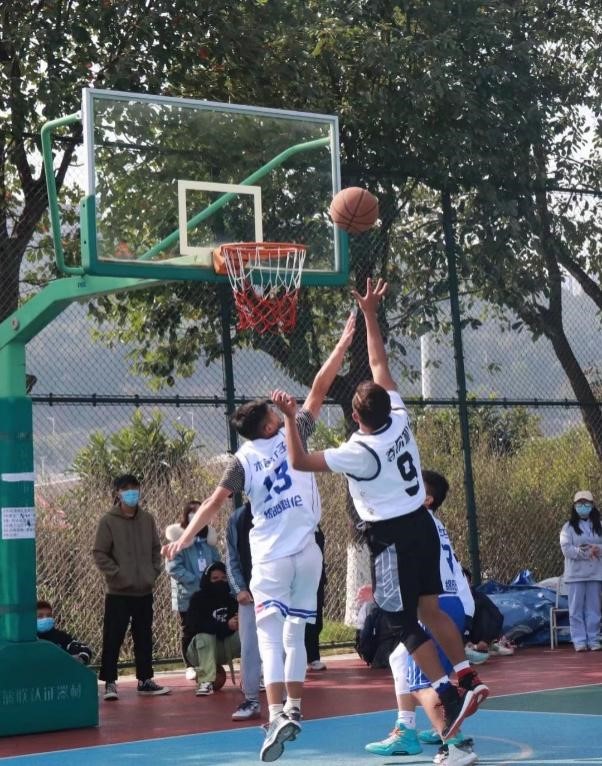 在一声声“加油!雄起!”的呼喊中,队员们熟练地玩转篮球,躲避对手的拦球,再一跃而起,扣篮!简直帅爆了!他们灵活的身姿,在阳光下熠熠生辉,拼搏的身影,在这寒冷的冬日里,显得格外热烈。他们商讨着战术,击掌为对方加油打气,比分落后不会气馁,比分略高也不会骄傲,比赛结果虽然有输有赢,仍然把“友谊第一”展现得淋漓尽致,充分的展现了不怕吃苦、团结协作、友谊至上的“运动精神”。