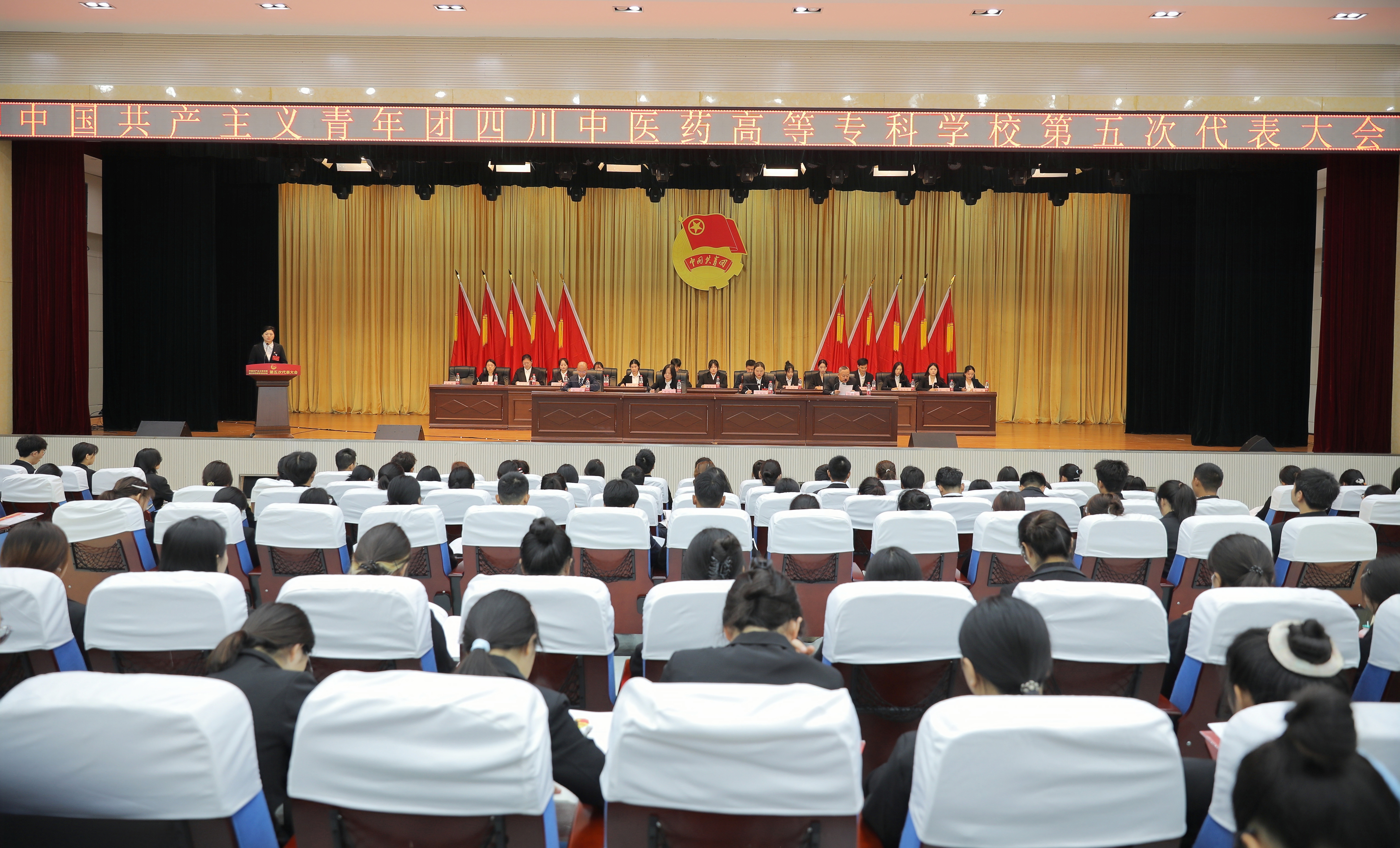 10月31日,中国共产主义青年团四川中医药高等专科学校第五次代表大会顺利召开,这次大会是在习近平新时代中国特色社会主义思想指引下,全校深入学习贯彻落实党的二十大精神,推进学校高质量发展建设重要时刻召开的一次青春盛会。共青团绵阳市委书记左春艳,学校党委书记李炜弘,学校党委副书记、校长李祥,学校党委副书记、工会主席商碧辉,来自7个学院基层团组织的200名团员代表出席并参加会议。
