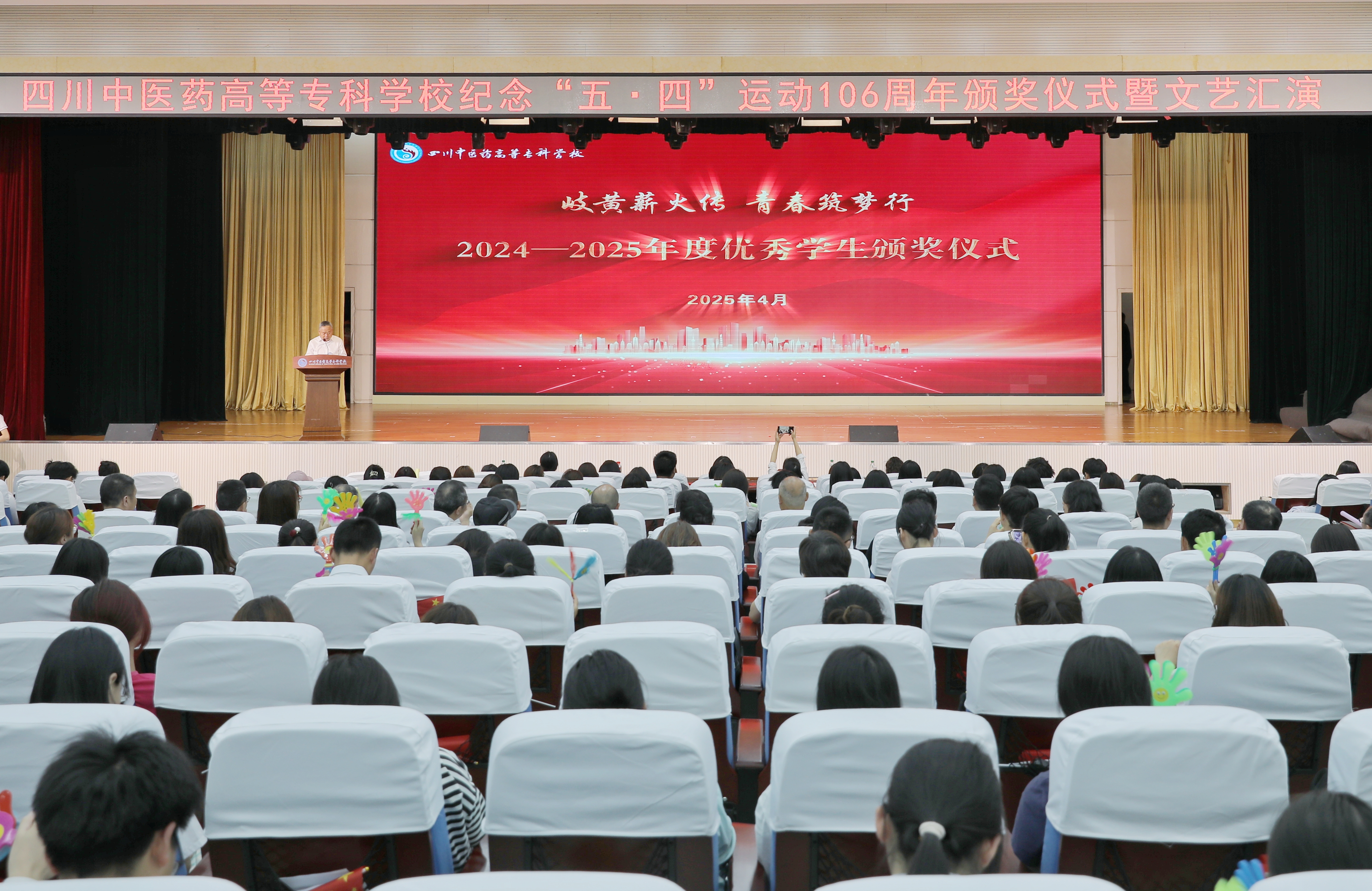 4月28日,我校举行了纪念五四运动106周年颁奖典礼暨文艺汇演。大会表彰了获得国家奖学金、励志奖学金、“东方奖学金”“厚德勤学奖学金”、优秀学生干部、优秀共青团干部等先进个人和五四红旗团总支、青年志愿者先进集体、先进班集体等先进集体。在家校领导,附属医院-绵阳市中医医院主要领导,校外嘉宾和中层干部及线上线下师生代表上千人参加。