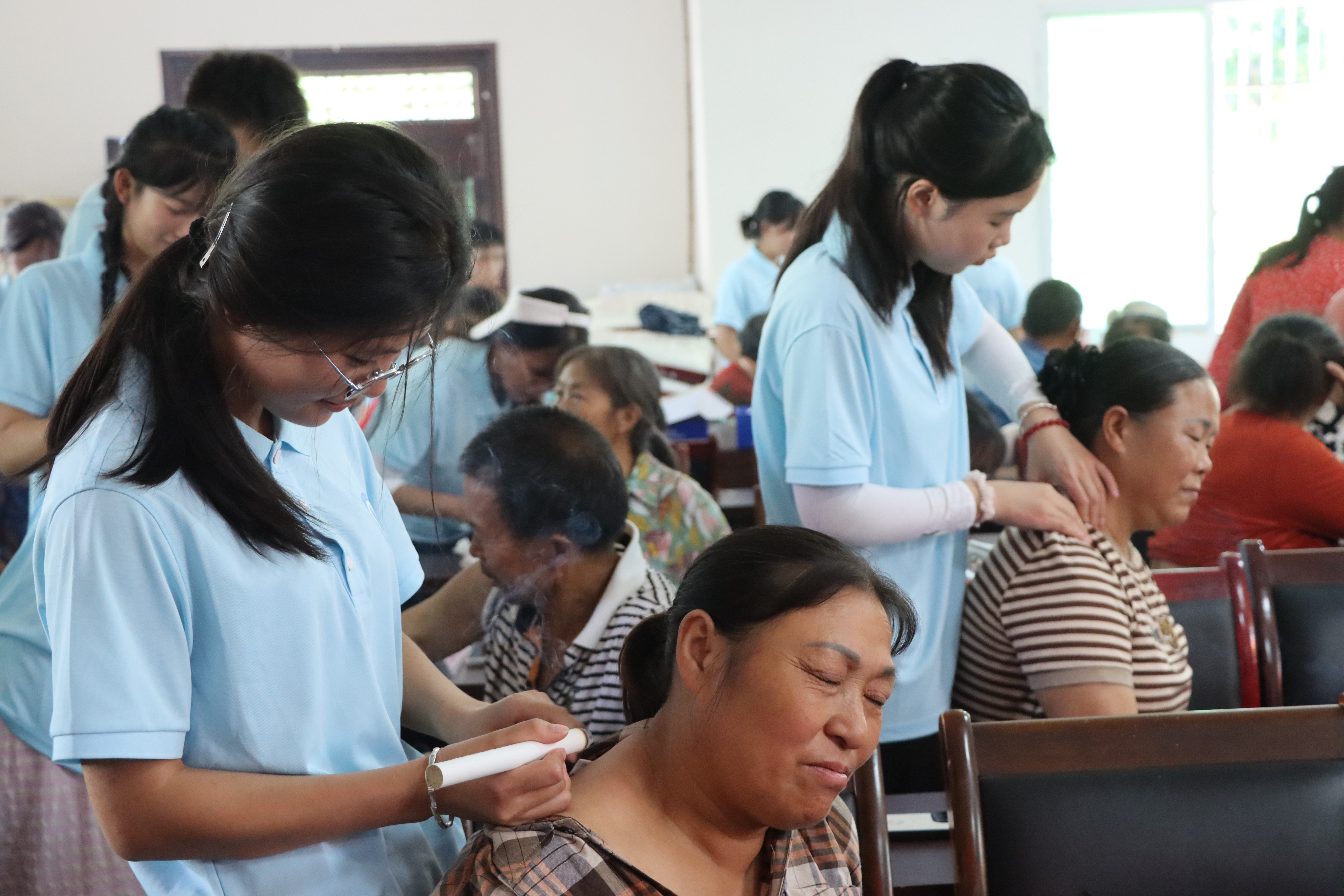 7月3日,护理学院南丁格尔社会实践队走进绵阳市涪城区丰谷镇敬老院,用中医药专业知识传递传统养生智慧。从 “晨起搓脸养生” 到 “艾灸保健妙用”,为老人定制健康手册;健康宣教聚焦老年病防治,讲解 “血糖监测要点”“脑卒中预防” 等实用知识;急救技能普及针对养老场景,为护工与老人增添安全防线。队员们还一对一为老人们做健康评估、演示穴位按摩,陪老人闲话家常等,以专业与温情延续中医助老情怀,让暖意铺满敬老院。