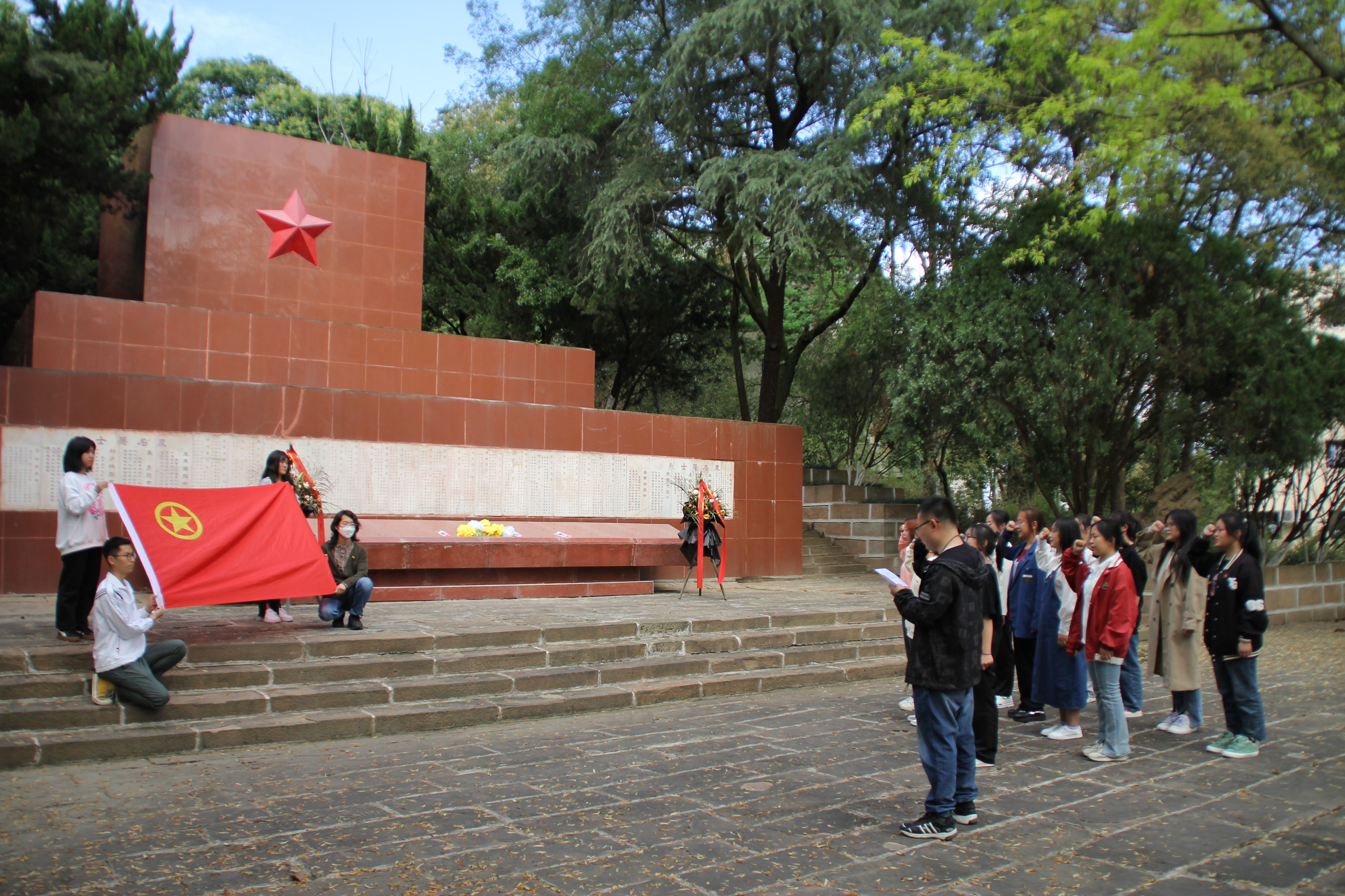 近日,中医学院团总支于绵阳南山烈士陵园开展了主题团日活动,此次团日活动由中医学院团总支书记邓戈弋、22级医美专业辅导员伍阳林带队,22级医美专业团支部全体同学们参加。